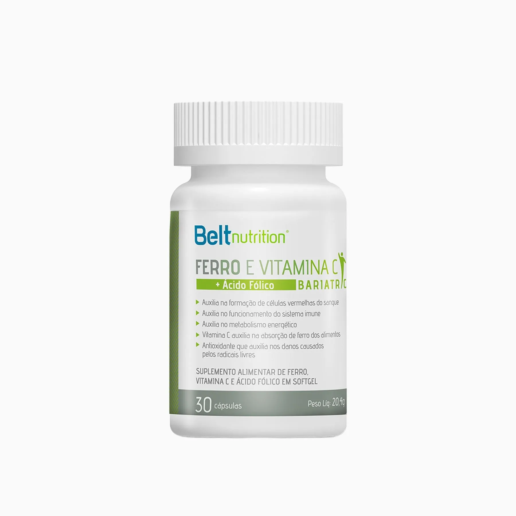 A deficiência de ferro se desenvolve após a cirurgia bariátrica por várias razões, incluindo intolerância à carne vermelha, diminuição da secreção de ácido gástrico e redução da absorção devido o desvio intestinal, a carência de ferro é ainda mais prevalente em mulheres. A recomendação é que a ingestão via oral de ferro associado à vitamina C e ácido fólico seja diária para evitar anemias graves, queda intensa de cabelo, fraqueza e todas as intercorrências associadas à deficiência de ferro. INDICADO PARA: Bariátricos Gestantes Lactantes Pessoas que necessitem de complemento de ferro